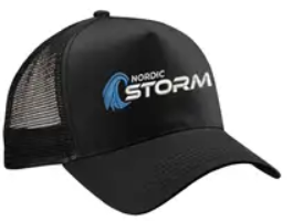 Nordic Storm Snapback Trucker Cap, sort med full Storm bølge logo. Sort curved skygge.